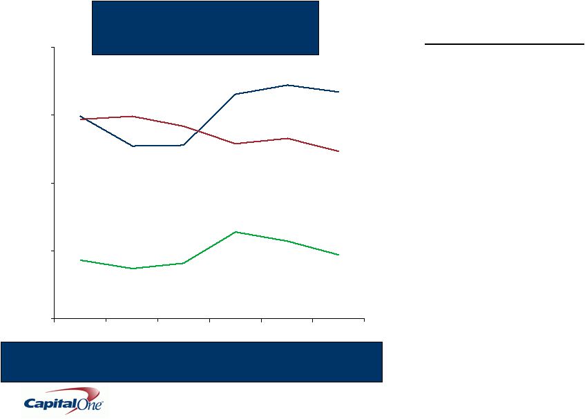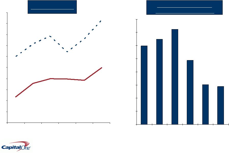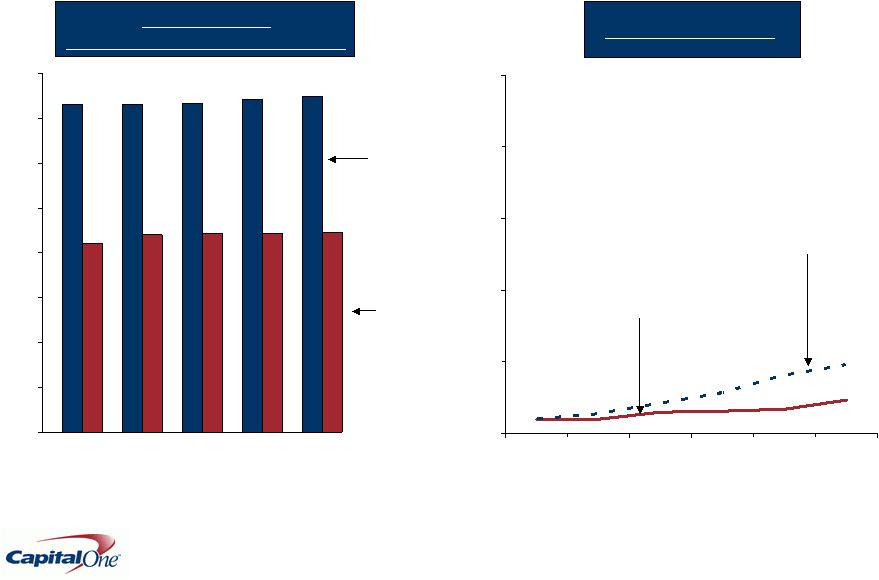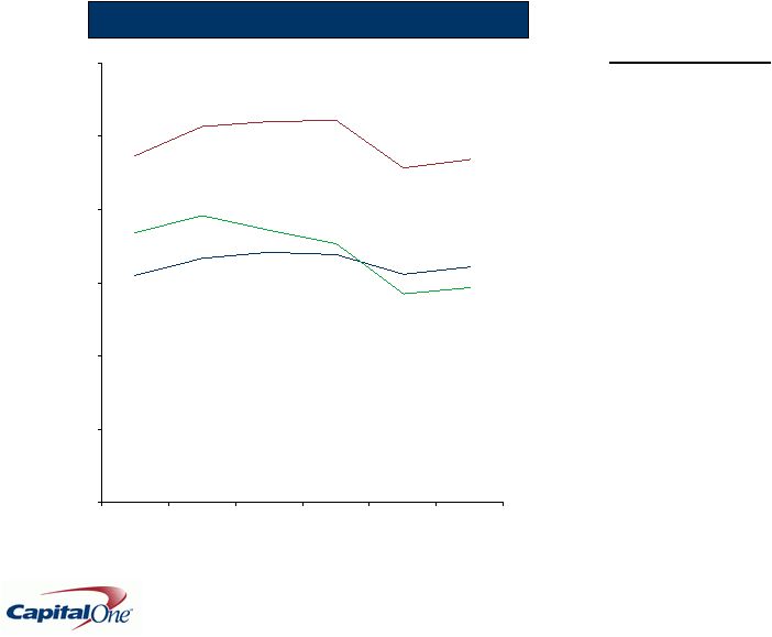 ![]() 11 Capital One delivered an operating profit of $386M despite increasing headwinds Net Income from Continuing Operations ($Millions) Q308 Q208 Q108 Q407 Q307 National Lending US Card $ 345.0 $ 340.4 $ 491.1 $ 498.7 $ 626.8 Auto Finance 14.5 33.6 (82.4) (112.4) (3.8) International 12.1 33.7 33.3 54.7 47.4 SUBTOTAL 371.6 407.6 442.0 441.0 670.5 Local Banking 88.2 67.1 75.8 103.6 195.5 Other (74.0) (12.2) 114.6 (223.0) (49.6) Total Company $ 385.8 $ 462.5 $ 632.6 $ 321.6 $ 816.4 |