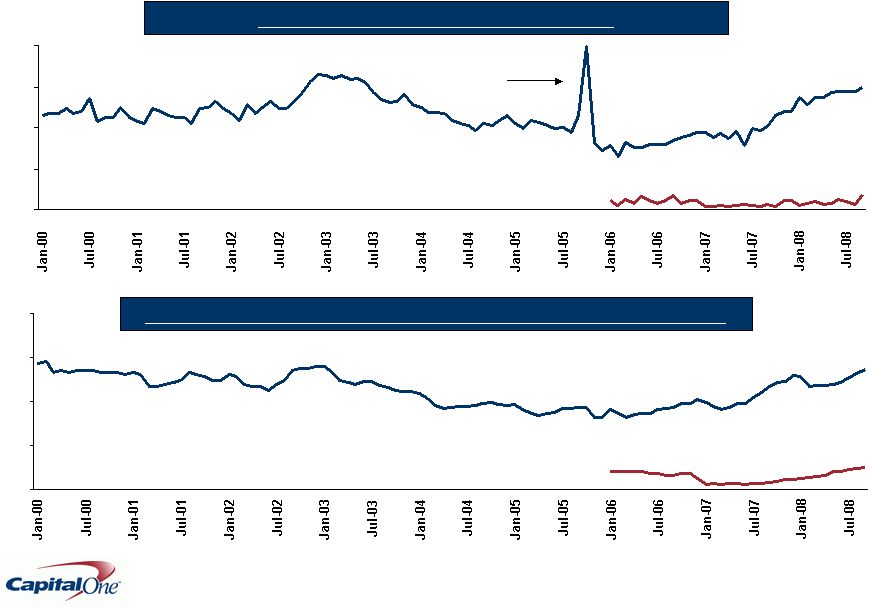 | | Charge-offs declined in the third quarter of 2008 to 6.13 percent from 6.26 percent in the second quarter of 2008, but increased from 3.85 percent in the third quarter of 2007. The company expects the charge-off rate to rise to around seven percent for the fourth quarter, and to the mid-seven percent range for the first quarter of 2009. Delinquencies increased in the third quarter of 2008 to 4.20 percent from 3.85 percent in the previous quarter and from 3.80 percent in the year ago quarter. |